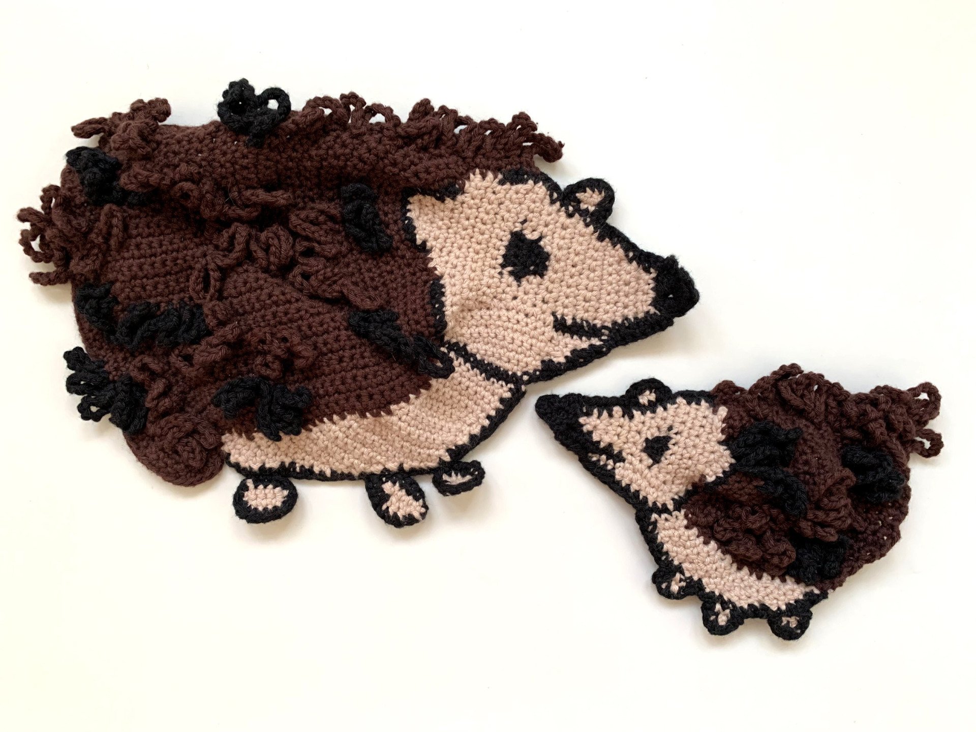 Whether you want to crochet an applique hedgehog to add to a blanket, liven up a hat or create a nursery mobile (the possibilities are endless!) or make a stuffed toy hedgie, then these are the patterns for you. Both designs come in adult Hedgehog and Hoglet sizes so an entire family can be created. The stuffed patterns have the most adorable heart noses ... just too cute!